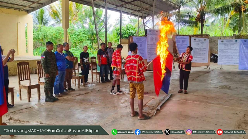 Sumala sa press release sa 89th Infantry Battalion, isa ka mahinungdanong gutlo sa kalihokan mao ang seremonyal nga pagsunog sa bandila sa CPP-NPA-NDF, nga nagsimbolo sa kolektibong pagsalikway sa mga komunidad sa ideolohiya ug impluwensya sa grupo.